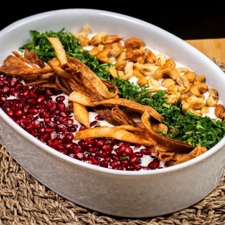 في قدر عميق، نقلب البصل المفروم بزيت الزيتون حتى يطرى قليلاً، ثم نضيف الطماطم، ومعجون الطماطم مع التقليب. نُبهر الخليط بالكزبرة المجففة، والكمون، والفلفل الأسود، والنعناع المجفف، والملح، ودبس الرمان، وعصير الليمون، ونقلب حتى تتوزع النكهات. نضيف ورق العنب المعلّب المقطع، ونغمر المكونات بمرق الدجاج، ونتركها في حالة الغليان لمدة 30 دقيقة. نضيف كوب الأرز المغسول والمصفى، ونقلّب حتى يتوزع جيداً، ونغطي القدر، ونتركه لمدة 15 دقيقة حتى يذوب الأرز وينضج. نضع مزيج الأرز والخضروات في قعر طبق التقديم. نخلط مكونات صلصة الفتة في وعاء، ونضيفه بالتساوي فوق مزيج الأرز والخضروات. للتزيين: نوزع حبّ الرمان، والخبز المحمص، والبقدونس المفروم، والكاجو المحمص، بالشكل المفضل، ونقدم الفتة مباشرة. تعلمي أيضاً: يالنجي على الطريقة العراقية الدولمةنشر لأول مرة على: kitchen.sayidaty.net